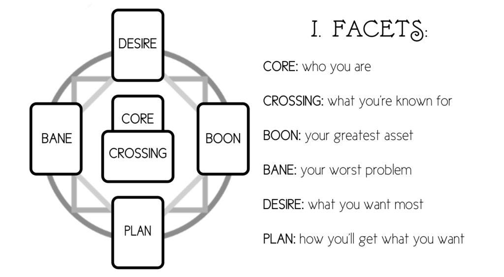 Our little exercise focused on what the traditional Spindlewheel experience labels as the “Core” of the character (though, unlike in my dramatic presentation, the game invites you to choose between the upright and the inverse interpretations every time you do an interpretation).