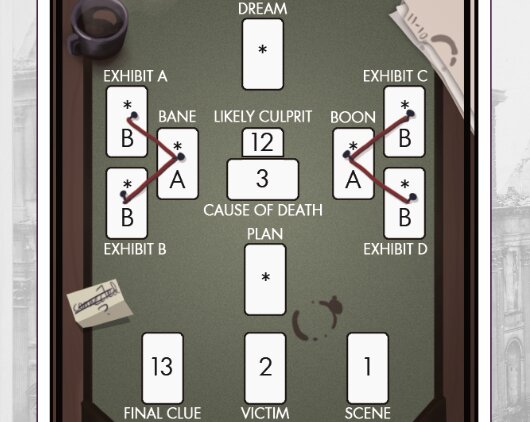 Notably, many of the cards in play do not get discarded. The original spreads for player characters become player hands, and the world spread becomes a deck of known facts, the Arbiter. Players can exchange cards with each other and the Arbiter deck when they declare a bond or a connection, and anything that “[you] haven’t seen the last of” is added to the Arbiter. So, introduced facts get reflected in what is available in play.