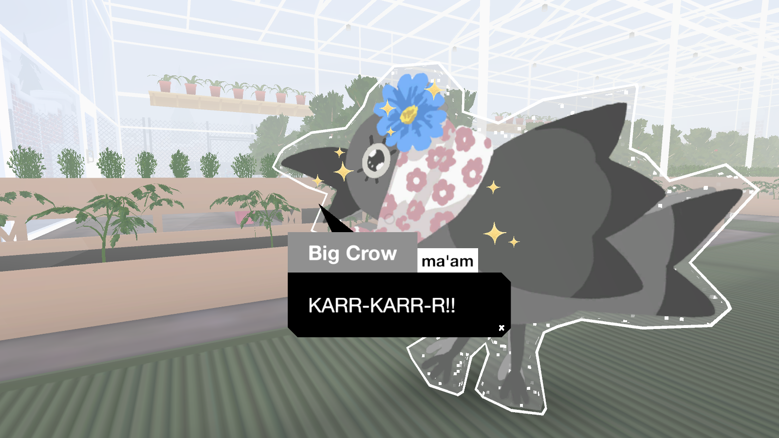 Looks like your neighbor friend is also shopping today! But could you meet anybody else? What if it’s a very (very) big crow, or a mysterious vent dweller? Maybe you will even get to keep some meaningful mementos from your adventures!